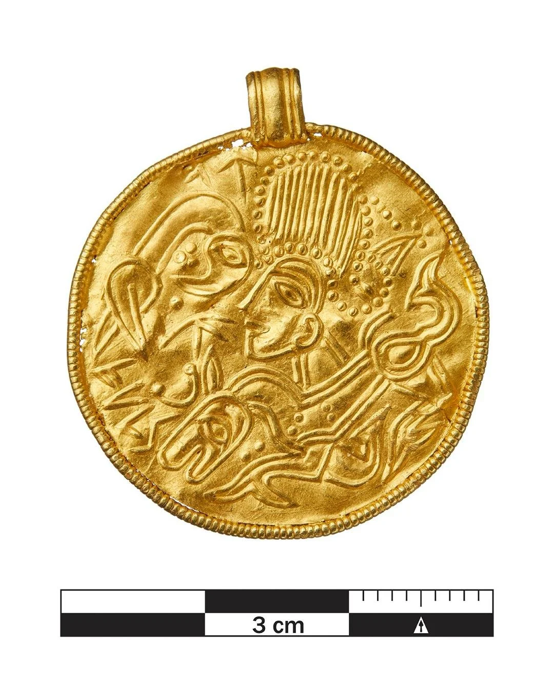 (RuneS entry: https://www.runesdb.de/find/266 )IK 98: Seeland II C-bracteate; 440-560 CE; Zealand, Denmark